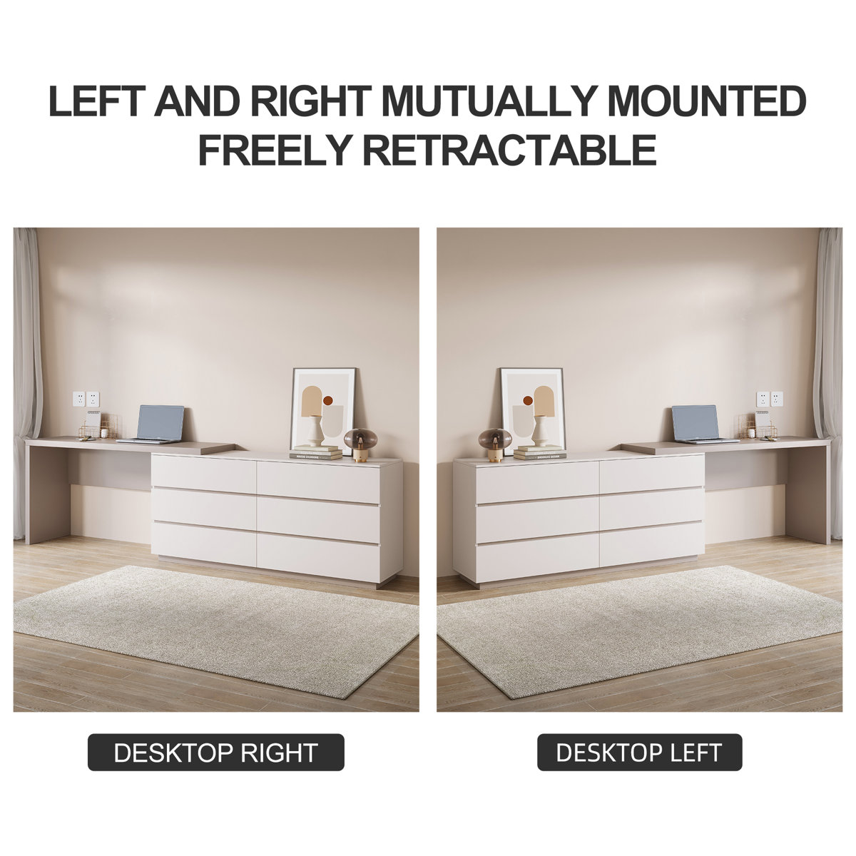 Amaly Modern Extendable Dresser-Desk Combo for Home Office, 6 Drawers