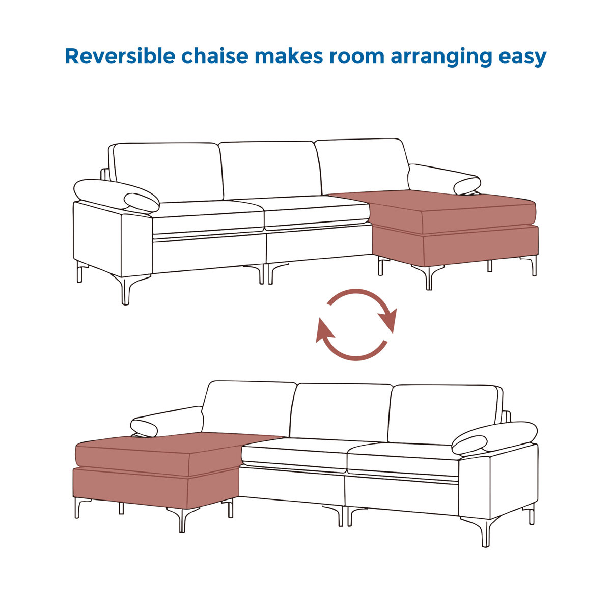 • Reversible L-shaped design — ottoman can be placed on the left or right side.