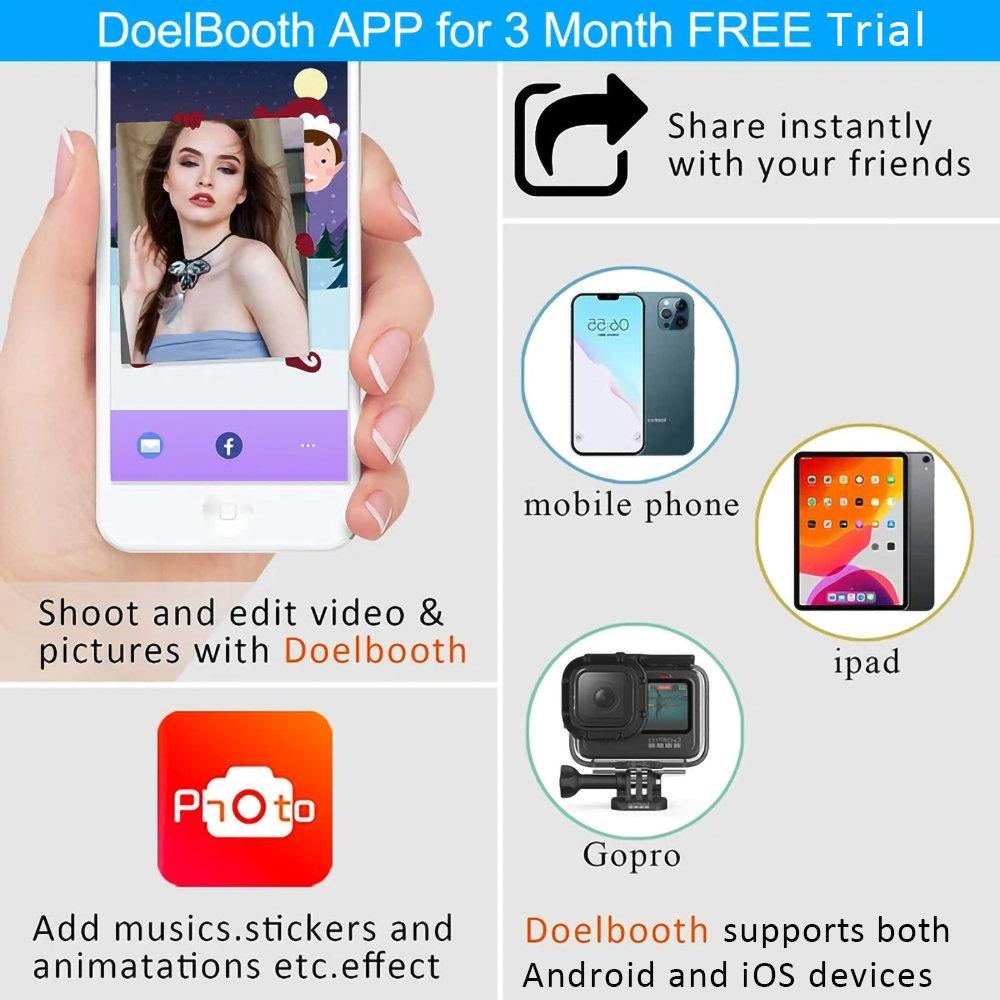 - Control The 360 photo booth Arm Through TouchPix/DoelBooth: A single press on the app will start the arm, begin the software recording session, and then stop the arm-in a seamless, integrated workflow. Make your events a 360 hit with the leading 360 photo booth apps, creating the most mind-blowing 360 experiences. We provide a 1-month TouchPix free trial and a 3-month DoelBooth app free trial. How to activate the free trials for TouchPix and DoelBooth: please email support@achhago.com with your phone number and 360 photo booth order number. We will send instructions on how to activate the free month. You can find TouchPix tutorials at https://touchpix.com/tutorials/.