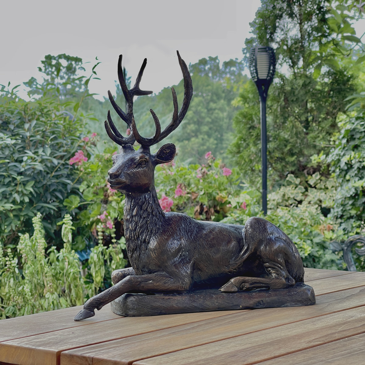The Bronze Sitting Deer on Base, hand-forged by Metropolitan Galleries, was produced using the traditional lost-wax bronze casting technique. This labor-intensive, time-consuming process ensures pristine quality and vivid detail. Metropolitan Galleries Inc. offers a wide selection of bronze statues and bronze fountains suitable for both indoor and outdoor use. The sculpture displays intricate, hand-forged detailing and a beautiful fire-applied patina.