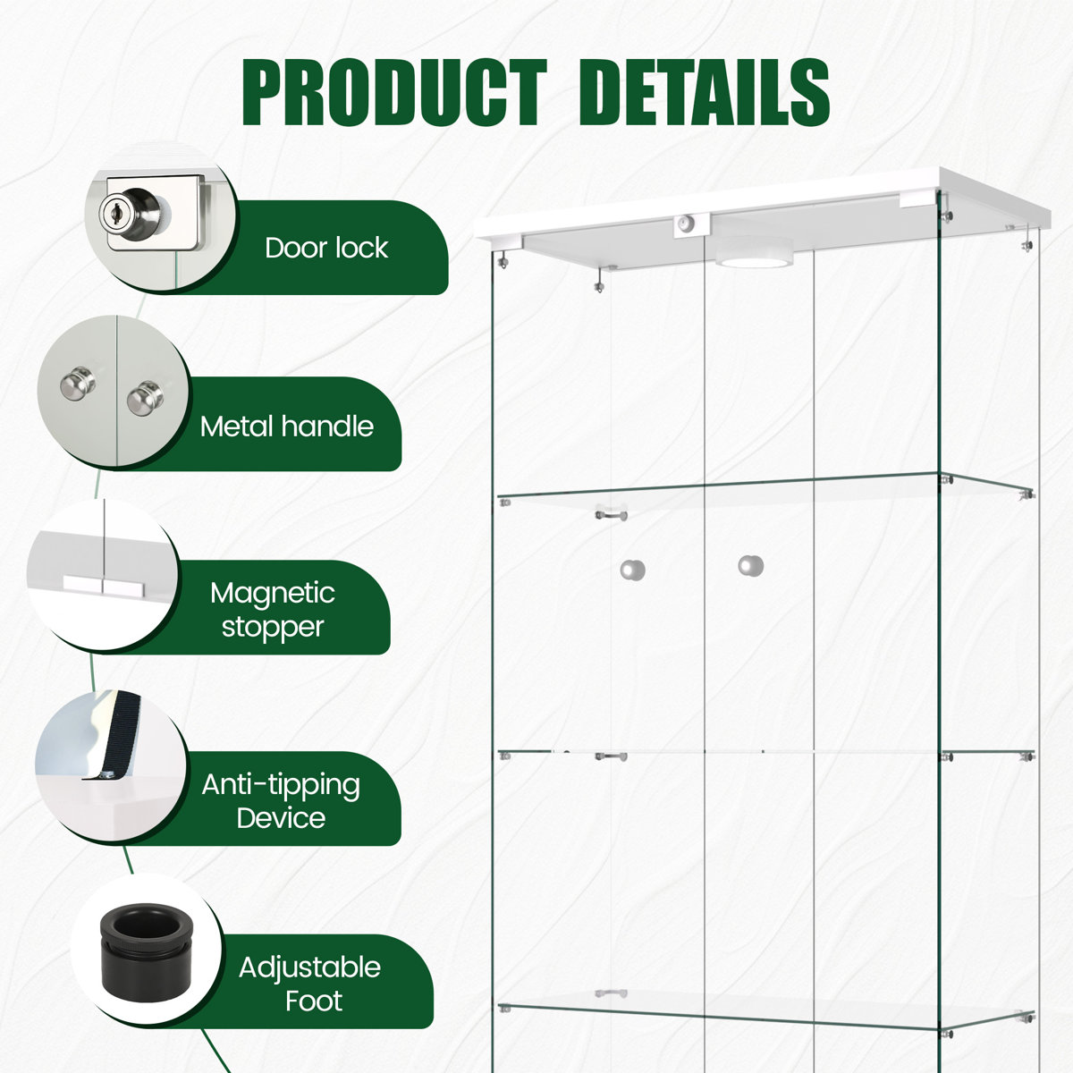 - Easy-to-Assemble Glass Cabinet: Timeless yet modern in appearance, this glass cabinet offers a quick, straightforward assembly aided by clear, user-friendly instructions for convenience.