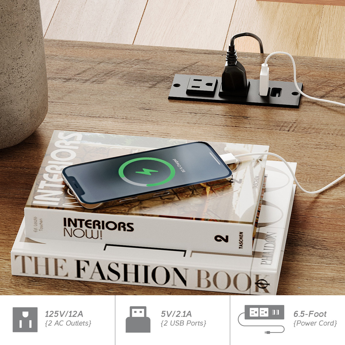 • 【Farmhouse Style Executive Desk】White distressed wood surface with mid-century touches; 56″ spacious desktop; Nine storage areas: 5 drawers, the back of the desk includes two semi-open storage cabinets and 2 storage doors; Charging function: 2 standard AC outlets and 2 USB ports, power cable length: 6.5 ft; Solid wood gourd legs; Desktop load capacity: 130 lbs. Overall Dimension: 55.9”L × 22.8”W × 30.9”H