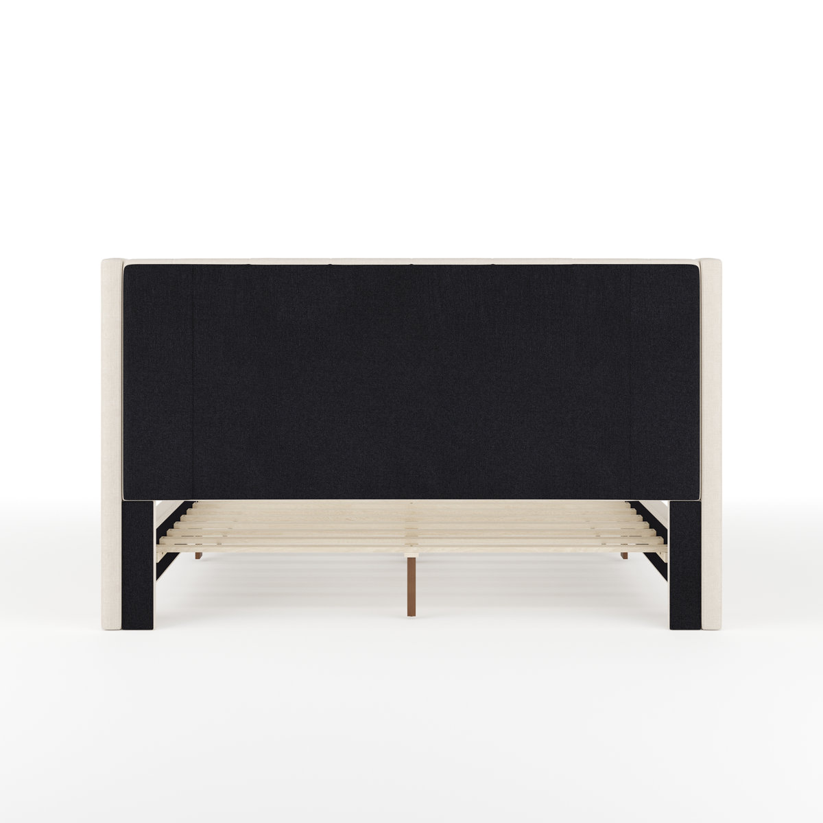 A simple silhouette is beautifully executed in the Martha Stewart Britta Platform Bed, which brings understated elegance and flexibility to your primary suite or guest room. Richly textured upholstery with piped detailing wraps the headboard, footboard, and cushioned side rails, blending effortlessly into any décor. Thoughtfully built with a solid wood frame and wood slat supports, this full-size bed holds up to 500 lbs static weight and requires no box spring. Gracefully rounded legs provide 6 inches of under-bed storage space, and the included illustrated instructions walk you through assembly in under one hour. Enhance your sleep experience by pairing this bed with one of our premium Martha Stewart SleepComplete mattresses for an elevated look and luxurious comfort.