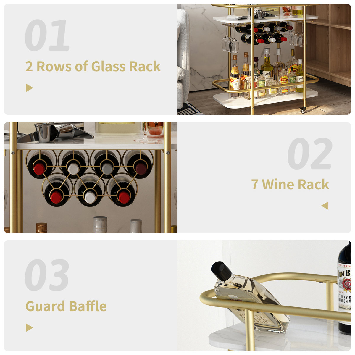 - Enhanced storage capacity: designed with a wine rack and glass holder, this bar cart accommodates most standard-sized wine bottles and stemware with ease. The two shelves meet your storage needs for plates, food, fruit, wines, dessert, ice buckets, and a coffee machine.
