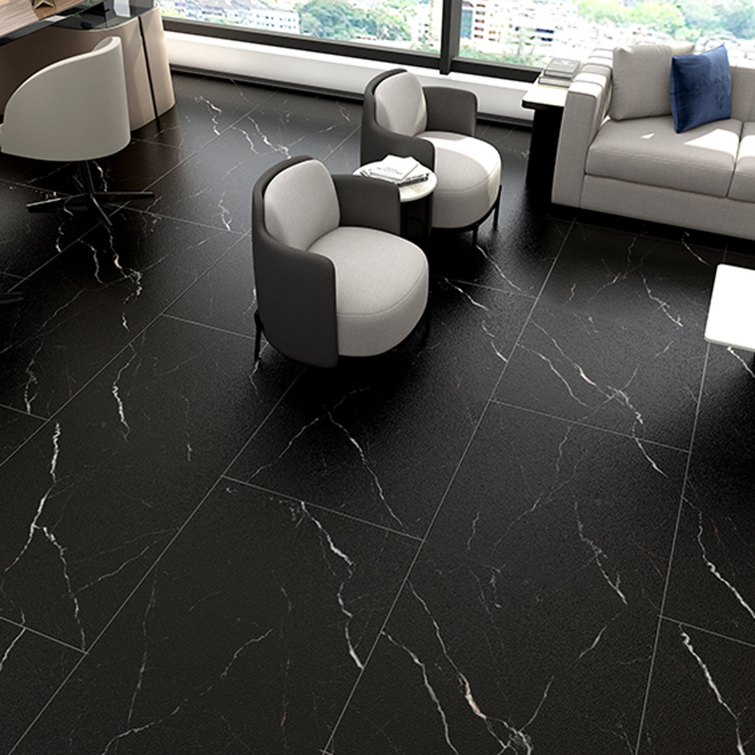 Onda Black is a nero black porcelain, marble-look textured floor and wall tile. It has stone-like textures that give it a very unique look. Available in a matte finish. Complete your project by coordinating tiles in multiple sizes and shapes from Qube Tiles for style, durability, and easy care. MSI look.
