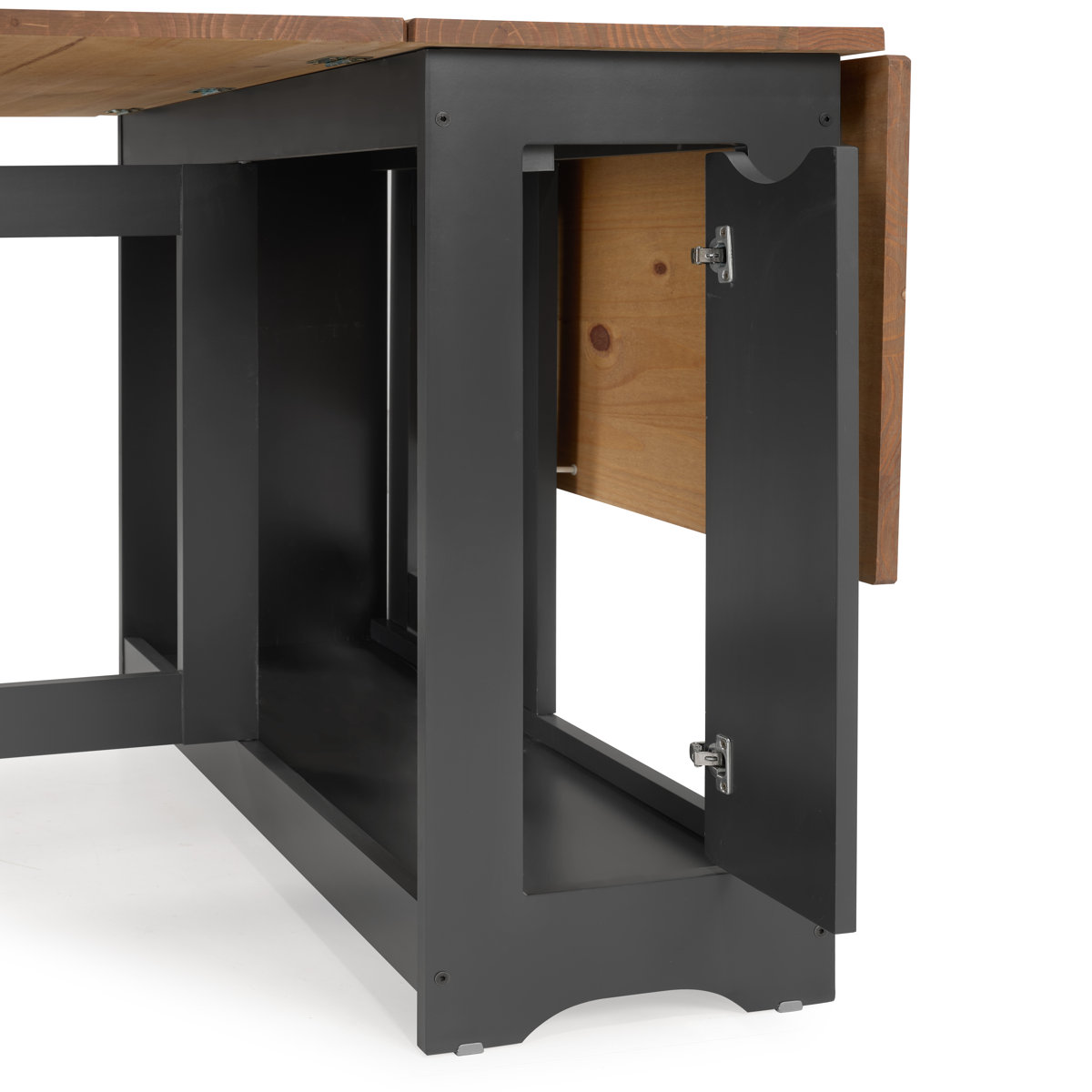 • Folding dining table: The folding dining table with its storage cabinet can store four chairs. This brilliant combination is a great space saver.