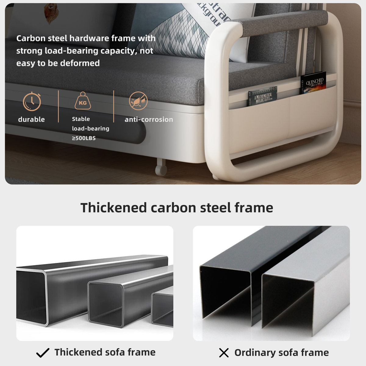 - Bring every living room idea to life with this beautiful convertible sleeper sofa. Upholstered in gray fabric and padded with high-density foam, it creates a clean yet cozy modern look that complements your existing décor. The dense foam fill delivers true comfort. Assembly is straightforward, and it converts into a sleeper by pulling out the base – a simple, practical solution that meets a variety of needs. Under the seat there’s a drawer to help keep your essentials organized. Suitable for both large and small living rooms.